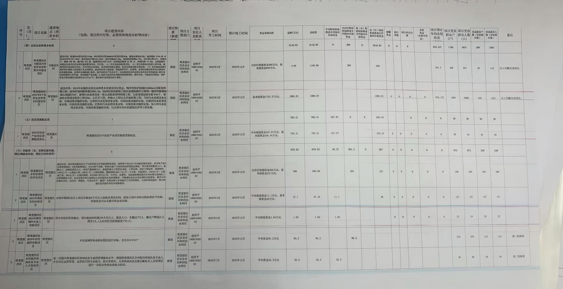 堆龙德庆区2025年度脱贫县财政衔接推进乡村振兴补助资金实施方案明细表